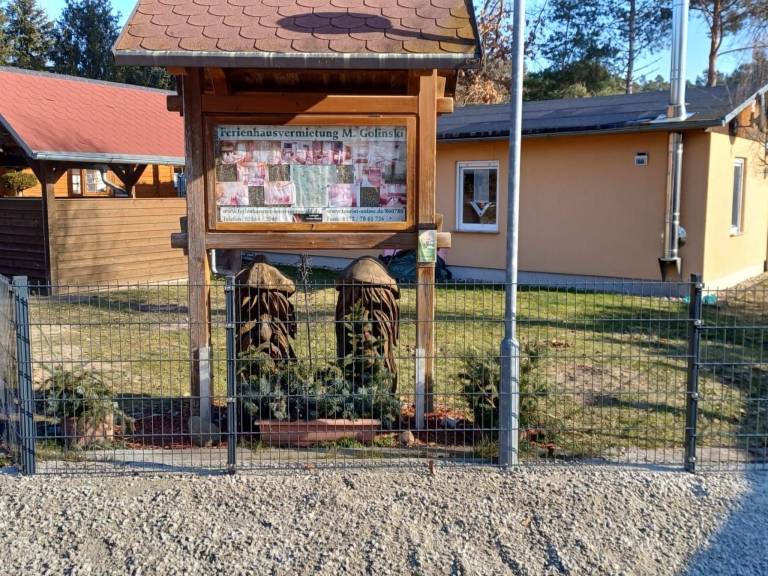 Neben der Siedlung befindet sich eine Gaststätte und eine Einkaufsmöglichkeit (Kiosk) für Ihre Frühstücksbrötchen und Urlaubszeitung.