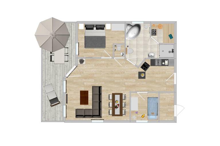 Die Ferienwohnung bietet einen einladenden Außenbereich mit einer Terrasse, die zum Entspannen einlädt. Der private Garten ist mit gemütlichen Liegestühlen und einer Feuerstelle ausgestattet. Für Kinder gibt es einen Spielplatz mit Schaukel und Sandkasten sowie ein Trampolin. Ein Grillbereich mit Holzkohlegrill und Brennholz rundet das Angebot ab und sorgt für gesellige Abende im Freien.