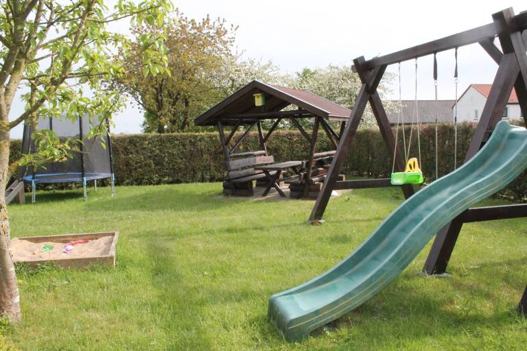 Carport, Heizung, Terrasse(überdacht), Garten(Gemeinschaftliche Nutzung mit anderen Gästen), Fahrradabstellraum, Gartenmöbel, Grill, Parkplatz, Liegestühle, Spielgeräte, Rutsche
