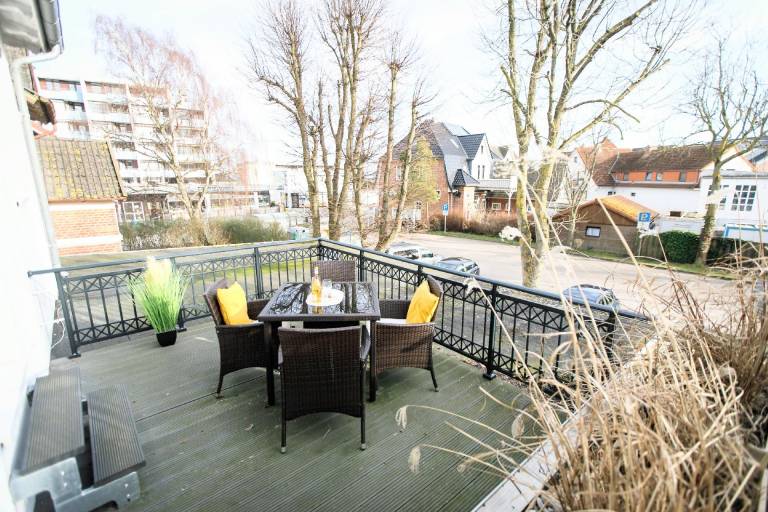 Das HausOstseewelle liegt 150m vom Strand entfernt. Die Ferienwohnung 2 liegt im I: Obergeschoss. Zur Wohnung gehört eine Terrasse mit Gartenmöbeln.