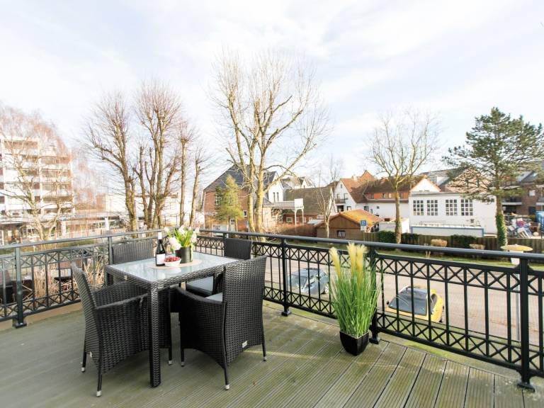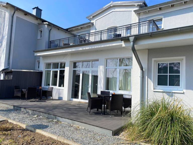 Das HausOstseewelle liegt 150m vom Strand entfernt. Die Ferienwohnung 3 liegt im I: Obergeschoss. Zur Wohnung gehört eine Terrasse mit Gartenmöbeln.