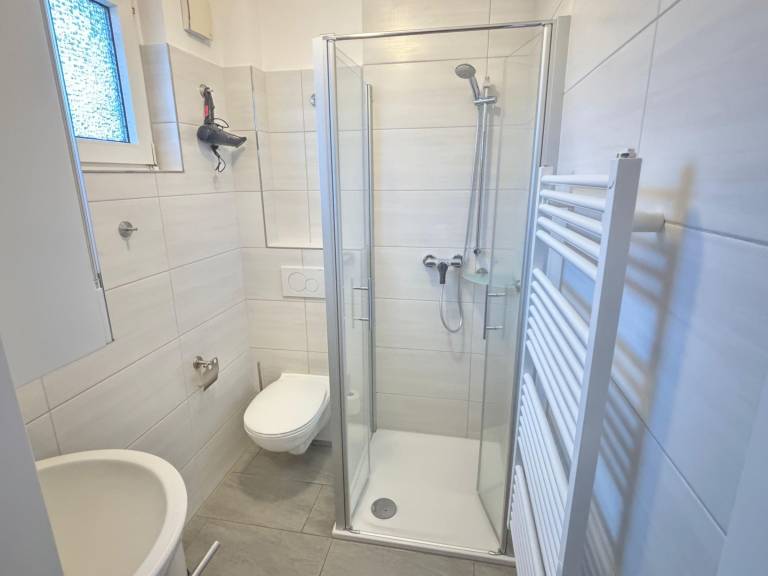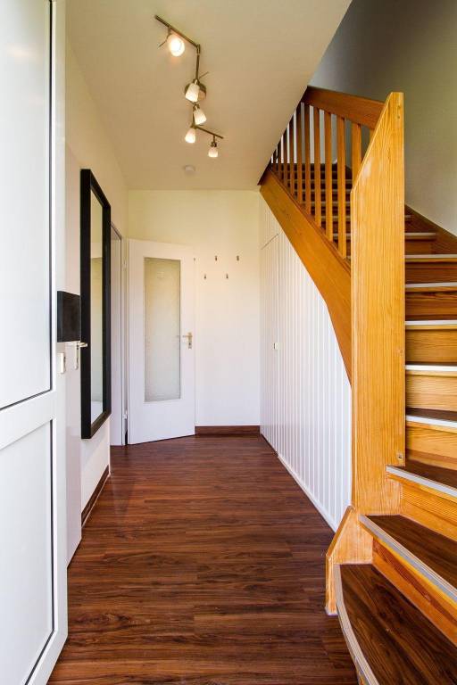 Die Ferienwohnung "Mour" ist ein Mittelreihenhaus, das über zwei Etagen für bis zu vier Personen Platz bietet. Im Erdgeschoss befinden sich ein Eingangsbereich mit Garderobe, ein lichtdurchflutetes Wohn- und Esszimmer mit einer integrierten, voll ausgestatteten Küche, die mit einem Geschirrspüler, Backofen, Mikrowelle und einer Waschmaschine ausgestattet ist. Das Badezimmer verfügt über Dusche, WC und ein Fenster.