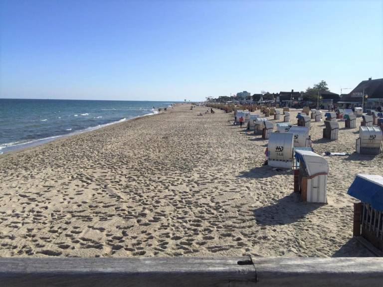 Die ca. 2 km lange Promenade bietet diverse Lokalitäten, Shops, sowie ein Meerwasserbad mit Wellness, Sauna und Fitnessstudio, einen großen Spielplatz und einen Kinderhafen (ähnlich KiGa) auch für grössere Kinder interessant. Die fast 2 km lange Promenade hat alles was man zum Flanieren benötigt. Der Strand in Dahme ist 6,5 Km lang und in Richtung Norden kann man Stundenlangen am Strand spazieren gehen.