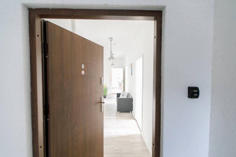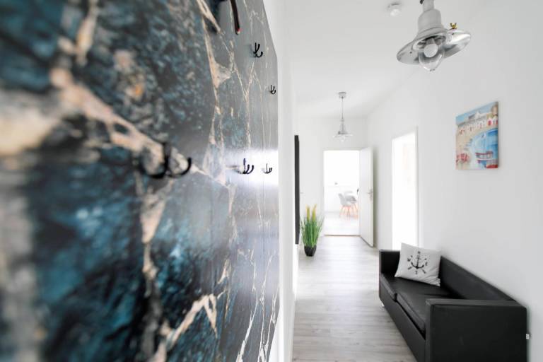 Das HausOstseewelle liegt 150m vom Strand entfernt. Die Ferienwohnung 6 liegt im Erdgeschoss mit Balkon. Die Wohnung hat ein Schlafzimmer ( Ehebett 180x200), ein Kinderzimmer mit zwei Einzelbetten (90x200) und ein Wohn- Esszimmer. Die Küche ist im Wohnzimmer integriert, und ist mit Kaffeemaschine, Toaster, Eierkocher, Küchengeräten, Mikrowelle, Geschirr, Töpfen, Geschirrspüler und einen Vierflammen Ceranfeld ausgestattet. Die Küche hat keinen Backofen. Zur Ausstattung gehören ein Radio und ein LCD-DVBT- TV. Das Haus hat einen Stellplatz pro Ferienwohnung.