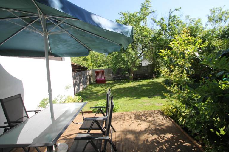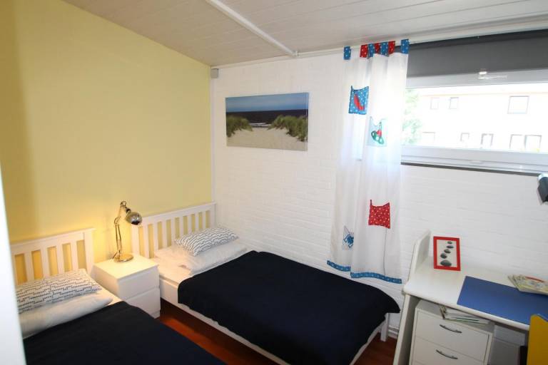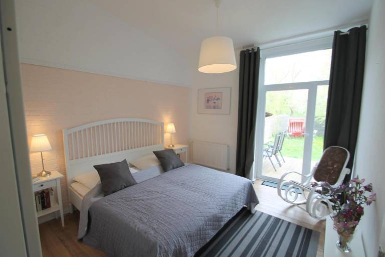 Familienfreundliches, großzügiges Teil (Parterre) eines Doppelhauses mit zirka 75 m² Wohnfläche. Im Stil skandinavischer Gelassenheit eingerichtet mit gutem Gespür für eine angenehme und harmonische Farbgebung und mit liebevollen Details. Gut geschnittene 3-Zimmer Wohnung. Windfang mit Garderobe, großes Wohnzimmer mit offen integrierter Küche. Zwei separate Schlafzimmer, einmal mit Doppelbett und einmal mit zwei Einzelbetten, sowie ein Duschbad runden das Angebot ab. Ein Kinderhochstuhl sowie ein Kinderreisebett können auf Anfrage kostenlos gestellt werden. Eine bestuhlte Terrasse mit Gartennutzung sorgt für Urlaubsfeeling pur! Großzügiger PKW-Stellplatz - evtl. auch für zwei Fahrzeuge - auf dem Grundstück. Für mitgebrachte Fahrräder steht eine Unterstellmöglichkeit zur Verfügung.