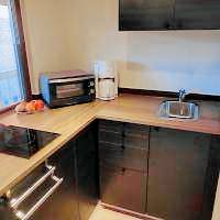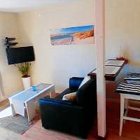 Das Apartment mit 30qm Wohnfläche bietet Platz für bis zu 2 Personen. Der Balkon ist mit gemütlichen Sitzmöbeln ausgestattet. Das maritime Flair des Hauses findet sich in der Wohnung auch in den Dekorationselementen wieder. Der kombinierte Wohn- und Schlafraum ist mit einem Doppelbett und einer Sitzecke, bestehend aus einem Sofa und einem Couchtisch, einem Radio und einem Flat-TV möbliert. Für den TV ist ein DVD-Player vorhanden. Die Küchenzeile ist mit allem Essentiellen ausgestattet. Sie finden Kaffeemaschine, Wasserkocher, Mini Backofen, 2-Platten Cerankochfeld, Toaster, Kühlschrank mit Gefrierfach, Geschirr und Besteck vor. Das moderne Bad ist mit Dusche, WC und Fön ausgestattet. Gegen Aufpreis kann ein 1 Wäschepaket 1x Handtuch, 1x Duschtuch, 1x Bettwäsche zum selbst beziehen in Anspruch genommen werden. Das Rauchen in der Wohnung ist nicht gestattet. Im Außenbereich kann geraucht werden. Zudem gibt es im Garten einen Grillplatz. Die Nutzung des WLANs ist im Preis inbegriffen. Das Parken ist kostenfrei möglich.
