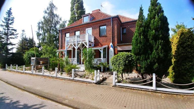 Das Apartment mit 33qm Wohnfläche bietet Platz für bis zu 2 Personen. Die Terrasse ist mit gemütlichen Sitzmöbeln ausgestattet. Das maritime Flair des Hauses findet sich in der Wohnung auch in den Dekorationselementen wieder. Die Wohnung verfügt über einen kombinierten Wohn- und Schlafraum, sowie ein kleines separates Schlafzimmer. Im kombinierten Wohn- und Schlafraum finden Sie ein Doppelbett und eine Sitzecke mit einem Radio und einem Flat-TV möbliert. Für den TV ist ein DVD-Player vorhanden. Im kleineren Schlafzimmer befindet sich ein Einzelbett. Die Küche ist mit allem Essentiellen ausgestattet. Sie finden Kaffeemaschine, Wasserkocher, Mini Backofen, 2-Platten Cerankochfeld, Toaster, Kühlschrank mit Gefrierfach, Geschirr und Besteck vor. Das moderne Bad ist mit Dusche, WC und Fön ausgestattet. Gegen Aufpreis kann ein 1 Wäschepaket 1x Handtuch, 1x Duschtuch, 1x Bettwäsche zum selbst beziehen in Anspruch genommen werden. Das Rauchen in der Wohnung ist nicht gestattet. Im Außenbereich kann geraucht werden. Zudem gibt es im Garten einen Grillplatz. Die Nutzung des WLANs ist im Preis inbegriffen. Das Parken ist kostenfrei möglich.