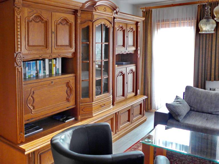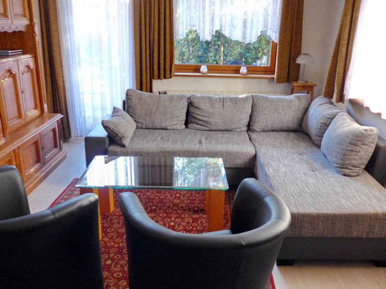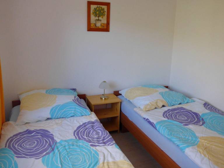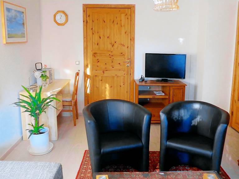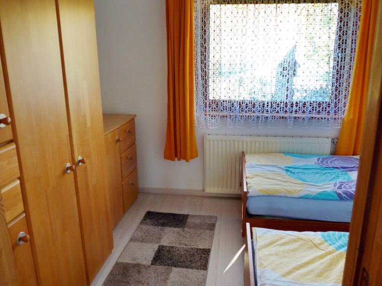 Die Ferienwohnung liegt im Erdgeschoss und hat eine Wohnfläche von ca. 65 m². Das Wohnzimmer ist mit einer gemütlichen Polstergarnitur, Satelliten-TV und Radio ausgestattet. Das Schlafzimmer verfügt über 2 Einzelbetten und das kleine Zimmer bietet ein Doppelklappbett (140 cm breit und auch für zwei Personen geeignet). Ein zusätzliches Gästebett kann auf Wunsch zugestellt werden.
