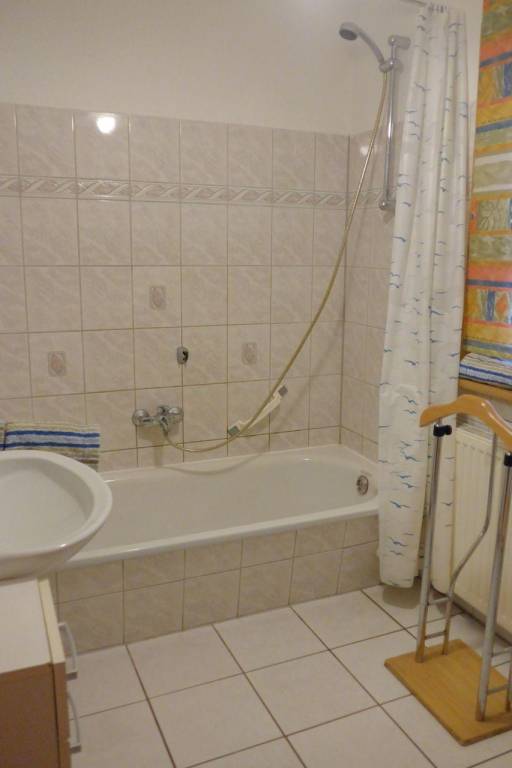 Das Badezimmer ist mit einer Badewanne ausgestattet. Die Wohnung wird zentral beheizt. Eine Waschmaschine ist ebenfalls vorhanden.
