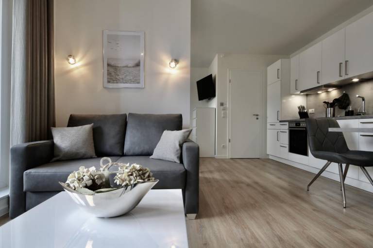 Der clevere Grundriss dieser Ferienwohnung mutet beinahe etwas „loftartig" an. Richtig schick für die Auszeit zu zweit, ganz gleich zu welcher Jahreszeit.