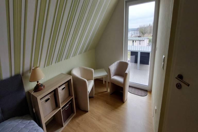 Moderne Ferienwohnung im Obergeschoss über 2 Etagen in einem Zweifamilienhaus am Rande des Natur- und Ferienparks in Klein Labenz mit herrlichem Blick vom Wohnzimmer und der Balkonterrasse auf den Groß Labenzer See. Erholen Sie sich inmitten des Naturparks Sternberger Seenlandschaft und genießen Sie den herrlichen Blick auf die beruhigende Landschaft. Der Groß Labenzer See ist von viel Wald umgeben und aufgrund seines Fischreichtums ein hervorragendes Ziel für Angler. Ruderboote stehen Ihnen nach Verfügbarkeit und gegen Gebühr zur Verfügung.
