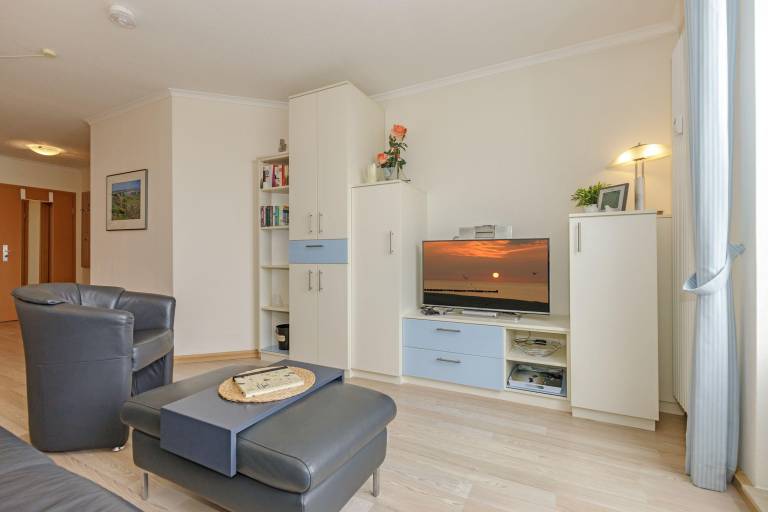 Der komfortable Wohnbereich ist mit modernen Wohnelementen, einem Schlafsofa für 2 Personen, einem Sessel , einem Kabel-TV Flachbildschirm , einem Radio mit USB / I-Pod-Anschluss und CD-Player, einem DVD-Player und einer 5-Tage-Satelliten gesteuerten Wetterstation ausgestattet.