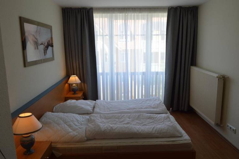 Das Schlafzimmer ist mit einem komfortablen Doppelbett und einem geräumigen Kleiderschrank für Ihre Urlaubsgarderobe eingerichtet.