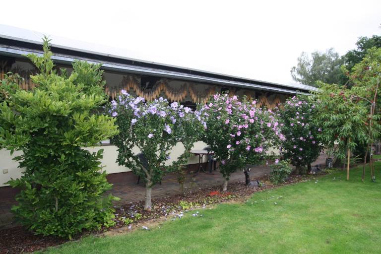 Das ehemalige Nebengebäude wurde liebevoll hergerichtet und beherbergt jetzt drei Ferienwohnungen. Es liegt in wunderschöner Umgebung direkt an der Berste, einem Nebenarm der Spree. Die Besitzer betreiben saisonal einen kleinen Kiosk am Ufer und haben eine eigene Kahnanlegestelle. Sie können also ganz spontan ein Ruderboot oder ein Kanu mieten (gegen Gebühr), um das verwunschene Wasserlabyrinth des Spreewaldes zu erforschen.