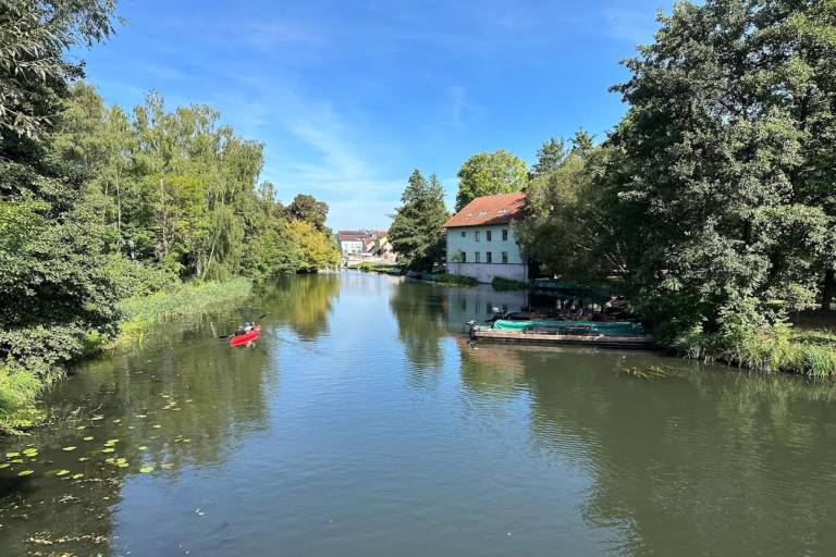 Das ehemalige Nebengebäude wurde liebevoll hergerichtet und beherbergt jetzt drei Ferienwohnungen. Es liegt in wunderschöner Umgebung direkt an der Berste, einem Nebenarm der Spree. Die Besitzer betreiben saisonal einen kleinen Kiosk am Ufer und haben eine eigene Kahnanlegestelle. Sie können also ganz spontan ein Ruderboot oder ein Kanu mieten (gegen Gebühr), um das verwunschene Wasserlabyrinth des Spreewaldes zu erforschen.
