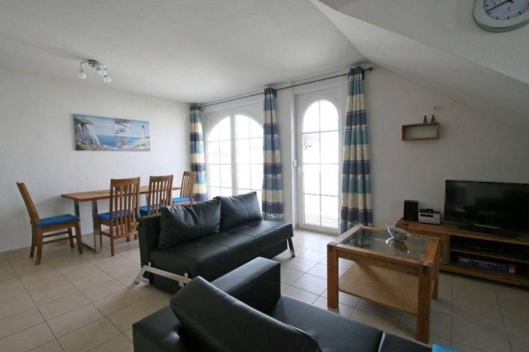 Mit 3 Zimmern auf ca. 84 m² bietet sie ausreichend Platz für bis zu 6 Personen. Das Wohnzimmer lädt mit einer bequemen Couch (ausklappbar 1,40x2,00m) sowie einem großen Esstisch mit 6 Stühlen zum Verweilen ein, es verfügt über ein Flatscreen TV-Gerät (50") mit Smart-TV Funktion, einen Blu-ray- DVD Player sowie eine HiFi-Stereo-Anlage mit CD-Player. Ein Internet WLAN-Anschluss (Flatrate) steht Ihnen hier kostenlos zur Verfügung.