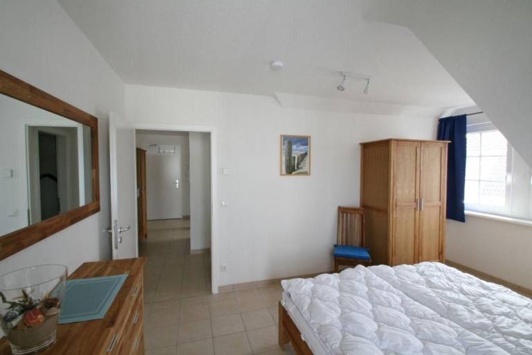 Im Schlafzimmer finden Sie ein großzügiges Doppelbett (1,80x2,00m), einen geräumigen Kleiderschrank, ein Sideboard für die kleinen Dinge und ein Kinderreisebett für die kleinsten Urlauber.