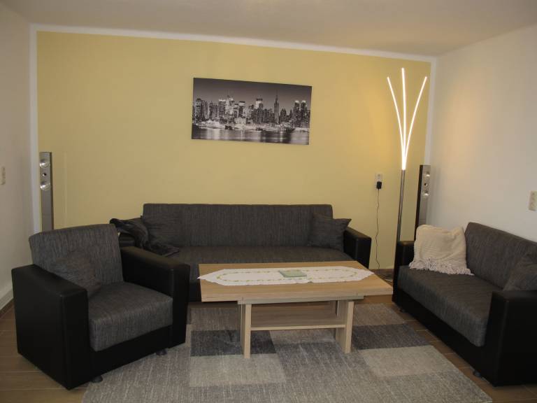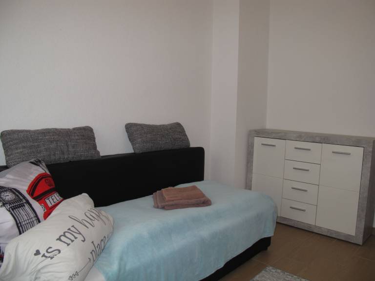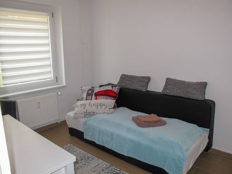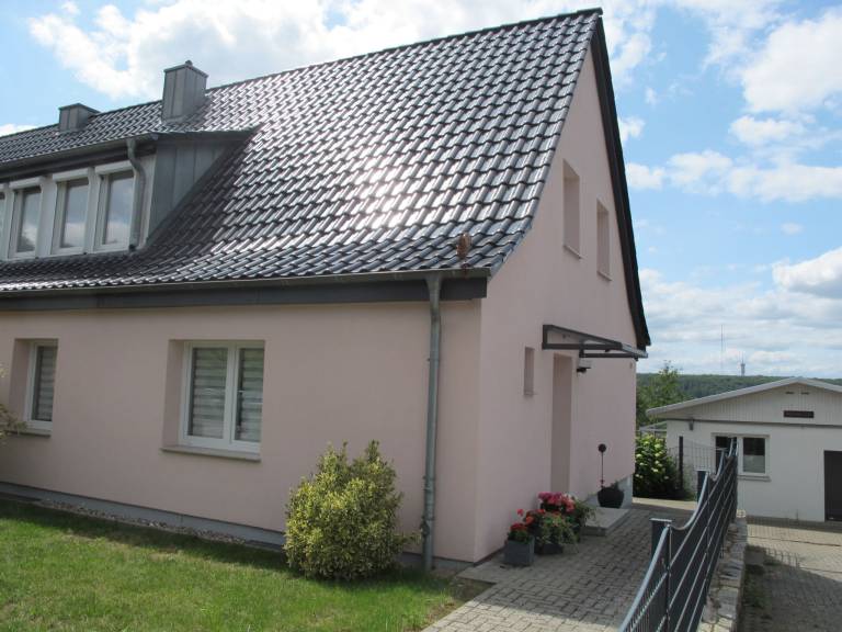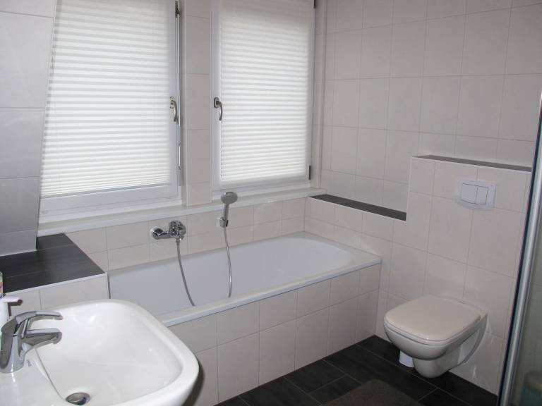 "Rosa", 4-Zimmer-Doppelhaushälfte 100 m² auf 3 Stockwerken. Modern und gemütlich eingerichtet: Wohnzimmer mit Sat-TV (Flachbildschirm). 1 Zimmer mit 1 Doppeldiwanbett (150 cm, Länge 200 cm). Offene Küche (Backofen, Geschirrspüler, 4 Glaskeramikplatten, Toaster, Wasserkocher, Tiefkühler, elektrische Kaffeemaschine) mit Esstisch. Sep. WC. Obergeschoss: 1 Zimmer mit 2 Betten. Bad/Dusche/WC. 2. Obergeschoss: (Wendeltreppe) 1 abgeschrägtes, offenes Zimmer mit Dachfenster mit 1 Bett. Terrasse 20 m². Terrassenmöbel, Gartengrill (mobil). Zur Verfügung: Internet (Wireless LAN, gratis). Parkplatz (2 Autos) beim Haus. Bitte beachten: für Kleinkinder nicht geeignet. Nichtraucher-Haus. Eigener Eingang, Rauchmelder.
