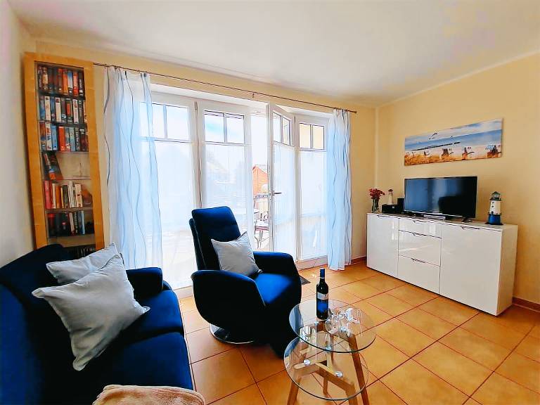 Das 54m² komfortable Drei-Raum-App. für Nichtraucher in der Villa Rosita hat zwei separate Schlafzi.; mit Doppelbett u. mit zwei Einzelbetten. Das helle Wohnzi. mit offener Einbauküche ist der Mittelpunkt des Appartements. Auf den beiden sonnigen Südost- und Südwestbalkonen können Sie sowohl den ersten Morgenkaffee als auch das Gläschen Wein am Abend im Freien genießen! Neben dem Spielplatz befindet sich der Grillplatz, eine Feuerstelle sowie eine großzügige Liegewiese. Bücher, Spiele, Filme und CD's, Rad- und Wanderkarten sowie Reiseführer sind vorhanden. Große Videofilmsammlung für alle Altersstufen.