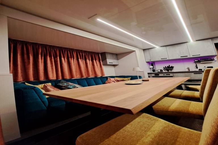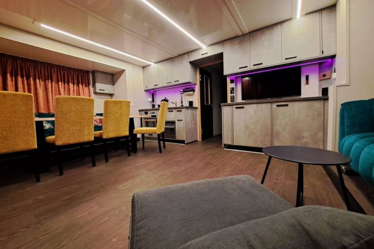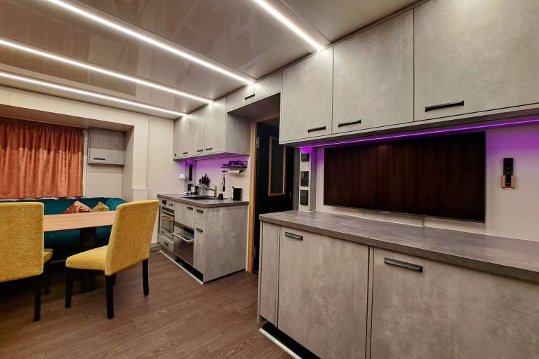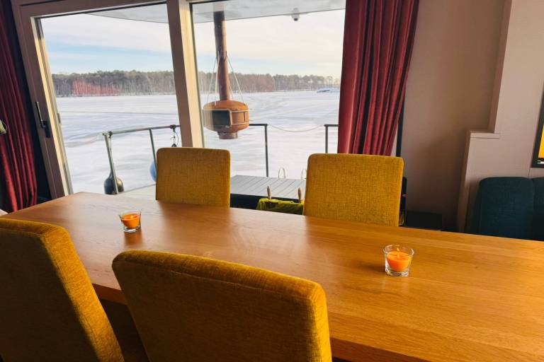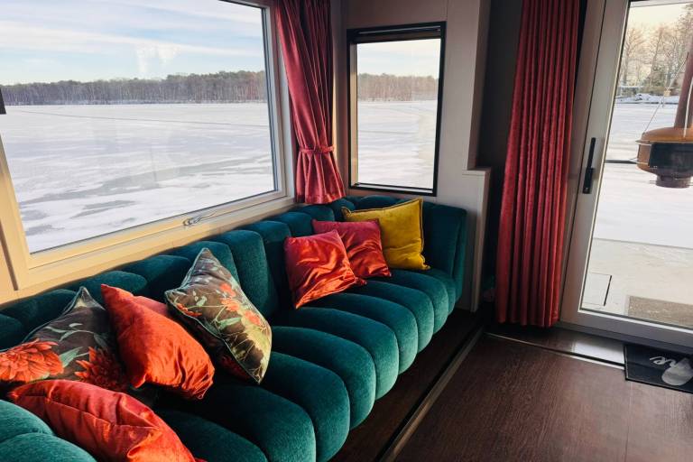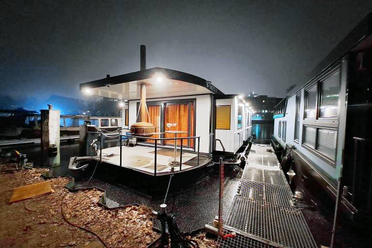 Erleben Sie pure Entspannung in unserem modernen schwimmenden Ferienhaus, das fest verankert im Wasser liegt und mit vier gemütlichen Schlafzimmern, zwei stilvollen Badezimmer sowie einem einladenden Wohn‑Essbereich perfekten Komfort für bis zu acht Personen bietet. Die private Sauna mit Blick aufs Wasser sorgt für Ihren ganz persönlichen Wellnessmoment, während die großen Fensterflächen den Raum mit Licht fluten und ein Gefühl von Freiheit vermitteln. Genießen Sie sonnige Stunden auf der Dachterrasse, starten Sie entspannt in den Tag oder lassen Sie den Abend bei einem Glas Wein direkt über dem Wasser ausklingen. Die Umgebung bietet zahlreiche Freizeitmöglichkeiten: Entdecken Sie die idyllischen Uferwege der Dahme für ausgedehnte Spaziergänge oder Radtouren, leihen Sie sich ein SUP‑Board oder Kanu für eine Runde auf dem Wasser, erkunden Sie die nahegelegenen Wälder des Müggelbergs oder besuchen Sie den Müggelsee mit seinen Stränden und Wassersportangeboten. Auch kulinarisch und kulturell hat der Standort viel zu bieten – kleine Cafés, Restaurants am Wasser und die charmanten Ortsteile Köpenick und Grünau sind schnell erreichbar. Dieses Hausboot ist der perfekte Rückzugsort für alle, die Ruhe, Natur und stilvollen Wohnkomfort in einmaliger Lage kombinieren möchten.