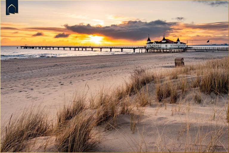 Ahlbeck, das östlichste Kaiserbad Deutschlands, begeistert mit der 280 m langen historischen Seebrücke – älteste Deutschlands (seit 1899) – mit Restaurant, Schiffsliegeplatz und romantischen Konzerten über der Ostsee.