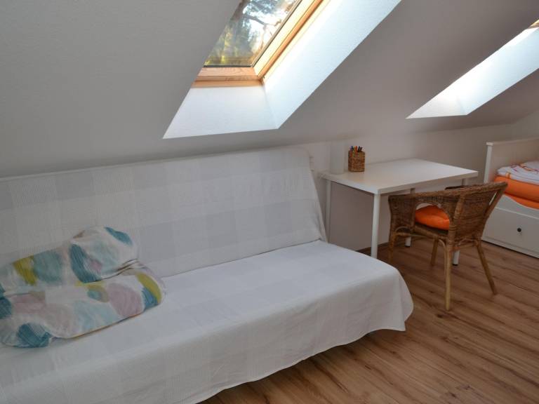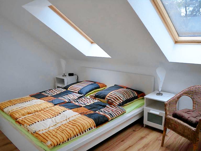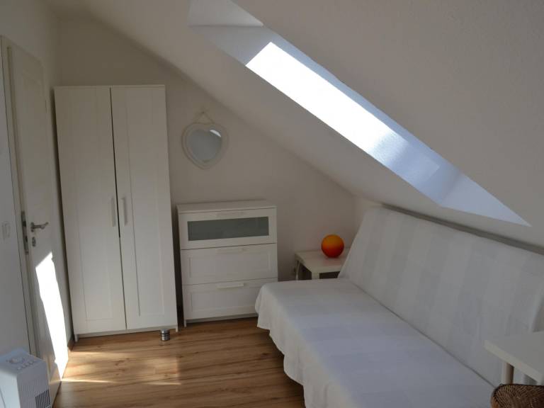 Die Wohnung liegt im Dachgeschoss, bietet bis zu fünf Personen Platz und besitzt eine Wohnfläche von ca. 85m². Sie zeichnet sich besonders durch das viele Tageslicht aus, welches durch die zahlreichen Fenster einfällt. Hell gestrichene Wände und Böden aus Holz sorgen für zusätzliches Wohlbefinden. Im ersten Schlafzimmer steht ein Doppelbett (1,80m x 2,00m) und im zweiten Zimmer schlafen Sie in einem französischen Bett (1,60m x 2,00m). Ein Einzelbett (0,90m x 2,00m) kann je nach Belieben in einem der Zimmer aufgestellt werden. Der offene Küchenbereich, komplett mit allen wichtigen Elektrogeräten ausgestattet, schmiegt sich elegant in den Wohnbereich ein. Letzterer unterteilt sich nochmal in einen Essbereich mit Esstisch und einen Sitzbereich mit zwei Sofas, Sessel und natürlich einen Fernseher. Das geräumige Badezimmer mit großer Dusche rundet das Angebot ab.
