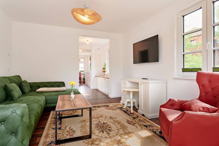 Unsere wunderschöne neue Villa Sissi & Franzl liegt unmittelbar neben dem Schlosshotel Wendorf und bietet Ihnen nicht nur einen unverwechselbaren (Aus-)Blick, sondern ist auch der ideale Ausgangspunkt für Ihre traumhafte Auszeit. Denn ganz egal ob Städtetrip oder einfach nur die Seele baumeln lassen – bei uns sind Sie auf jeden Fall richtig. 2 Schlafzimmer für bis zu 4 Personen; Terrasse / Garten; Am Teich mit Blick ins Grüne, Wohn- und Essbereich, bestens ausgestattete Küche und dem Parkplatz direkt am Haus. Die Ferienanlage eröffnet ab dem 01.03.2024 mit neuem Konzept und vielen aufregenden Neuigkeiten. Hier wird ab dem 01.03.24. ein neuer Erlebnisreiterhof mit Reitschule, Gastboxen für Ihre Pferde, einem Streichelzoo und vielen tollen Gelegenheiten zum Spielen & Lernen etabliert. Die ideale Grundlage für das bewährte und doppelt ausgezeichnete Konzept „Erlebnisreiterhof". Im Pferdeparadies erwartet Ihr geliebtes Pferd eine exklusive Umgebung. Rund um Wendorf können Sie mit Ihren vierbeinigen Freunden eintauchen in traumhafte Wälder & Wiesen. Direkt ab Hof erschließt sich ein beeindruckendes Reitwegenetz im Seenland, ohne Straßenüberquerungen mit mehreren Badeseen für Mensch und Pferd. Zudem bieten wir einen Anhängerstellplatz und moderne Infrastruktur für Reiter und Pferd. Willkommen im Paradies für Pferde und ihre Besitzer! Wendorf ist nur wenige Kilometer von Schwerin entfernt. Umgeben von der reizvollen Landschaft der Mecklenburgischen Seenplatte, haben Sie sowohl die Möglichkeit, Kunst und Kultur in der Landeshauptstadt zu entdecken, als auch aktiv die herrlichen Naturlandschaften zu erkunden. Hier gibt es für Groß und Klein vielseitige Möglichkeiten: lehrreiche Spielplätze, Wassersport auf dem Schlosssee, Schloss-Schimmelherde und begehbares Dammwildgehege, Fahrradverleih und Outdoor Sportgeräte, Reitkurse für alle Altersgruppen und Stufen, Ponyreiten für die Kleinen, Kutschfahrten & Ausritte in der wunderschönen Landschaft, Trakehner – Reit- und Zuchtpferde und ein umfangreiches Wellnessangebot mit verschiedenen Paketen.
