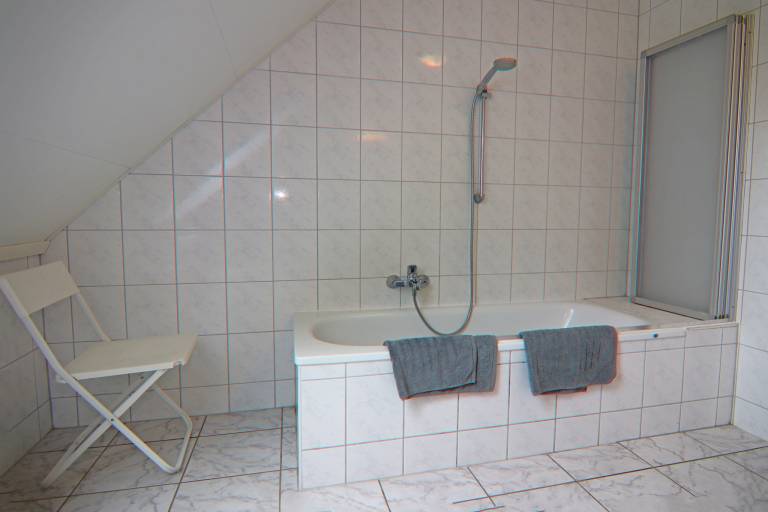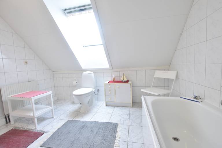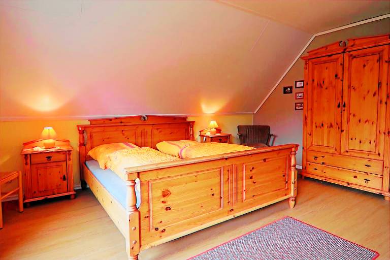 In der 1. Etage: (Küche(Esstisch(4 Personen), Wasserkocher, Toaster, Kochherd(4 Kochplatten, Ceranfeld), Dunstabzugshaube, Kaffeemaschine, Backofen, Mikrowelle, Kühl-/Gefrierkombination), Wohn-/Schlafzimmer(Doppelbett(180 x 200 cm), TV(Flatscreen), Sitzecke), Schlafzimmer(Doppelbett(180 x 200 cm), TV(Flatscreen)), Badezimmer(Badewanne, Waschbecken, Toilette, Waschmaschine), Flur, CD-Spieler, Balkon, Heizung, Kinderbett, Hochstuhl)
